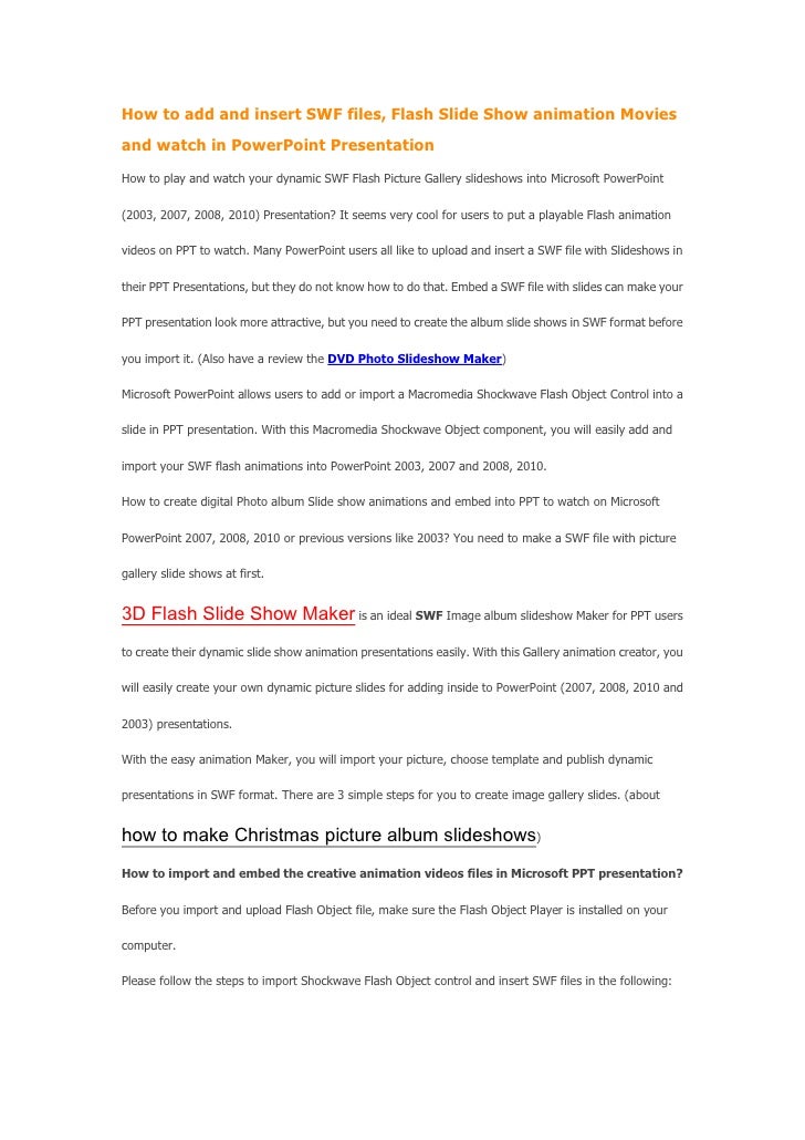 To insert flv video into PowerPoint, one way is to make use of the VLC Media Player. First, install the VLC Media Player. Once done, create a folder. Move the presentation and flv video to the folder. Now, open the presentation. Go to the slide which you want to have the Flash Video inserted.